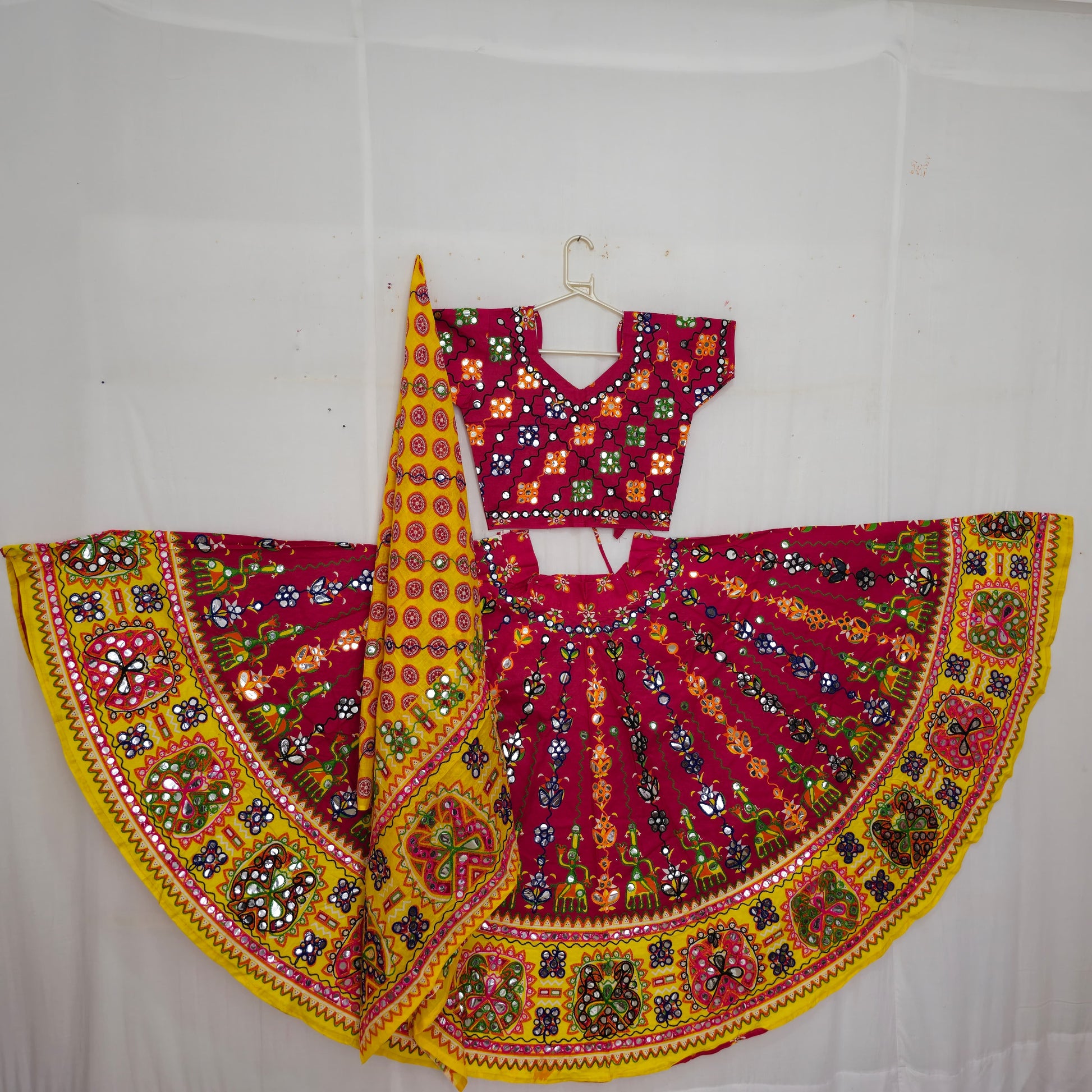 157-Cotton - Floral Patta 7 Meter Circle Floral-Women-Free size-40-7-2.25--Yellow-40