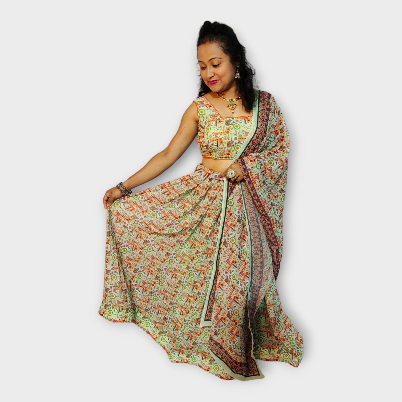 131-Digital Print-Women-Free size-36-44-3.5-2.25--Green Pista-36